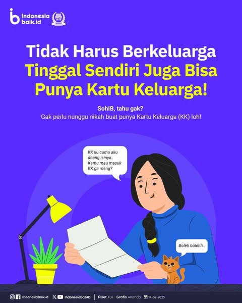 Masyarakat bisa membuat Kartu Keluarga (KK) sendiri meski belum berkeluarga. Seseorang yang tinggal di domisili tertentu sendiri bisa mempunyai Kartu...