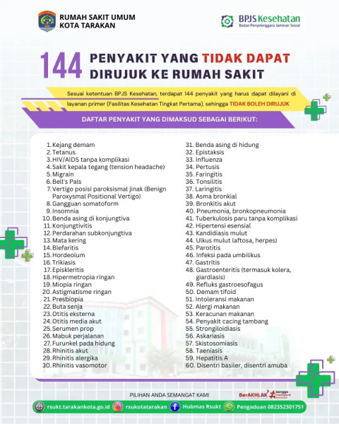 Berikut kami sampaikan terkait layanan BPJS Kesehatan terdapat 144 penyakit yang Tidak Dapat dirujuk ke Rumah Sakit.#sehat-penyakitSumber...