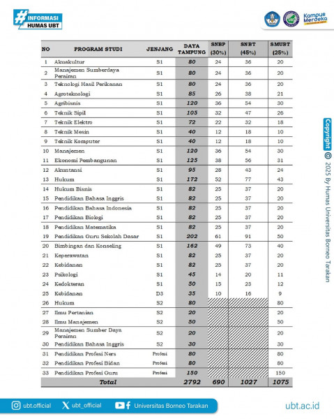 [DAYA TAMPUNG]Halo Calon Muda Borneo ..Berikut Daya Tampung UBT jangan sampai salah pilih ya ...Selengkapnya www.ubt.ac.idUBT UNGGUL !!!Humasâ&#...