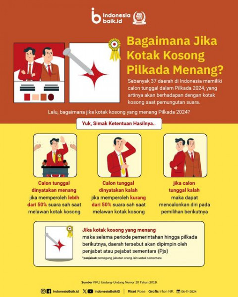 Bagaimana Jika Kotak Kosong Pilkada Menang?Berdasarkan data KPU, 37 wilayah memiliki satu pasangan calon atau calon tunggal dalam Pilkada 2024, terdir...