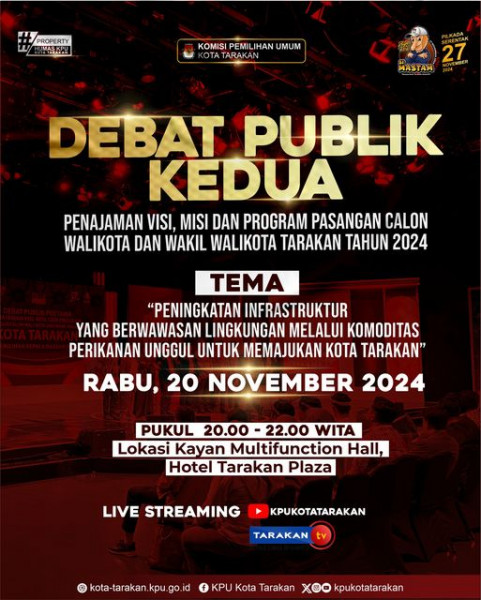 Debat Publik Kedua Pasangan Calon Walikota dan Waliko Walikota Tarakan Tahun 2024#TemanPemilih Jangan Lupa SaksikanDebat Publik Kedua Penajaman Visi,...