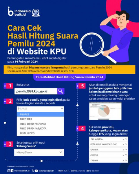 Cara Cek Hasil Hitung Suara Pemilu 2024 di Website KPUPenduduk Indonesia bisa memantau langsung pergerakan real-time data real count di website resmi...
