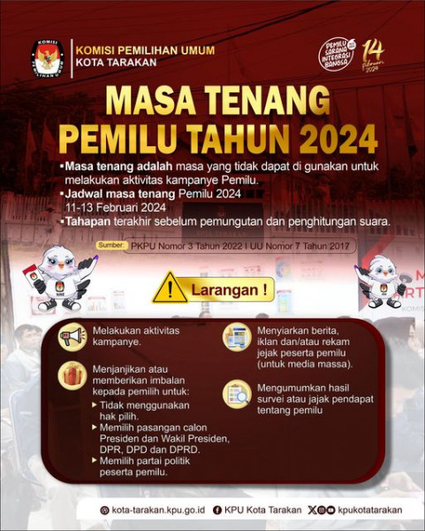 #TemanPemilih, kamu harus tau, dari tanggal 11 sampai dengan 13 Februari 2024 adalah Masa Tenang Pemilu Tahun 2024.Simak informasi selengkapnya ya.#KP...