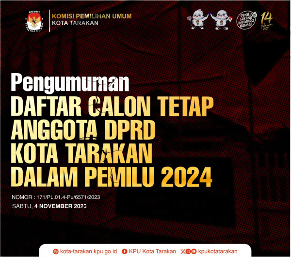 Pengumuman Daftar Calon Tetap Anggota Dewan Perwakilan Rakyat Daerah Kota Tarakan Dalam Pemilihan Umum 2024Download di Google Drive berikut : Daf...