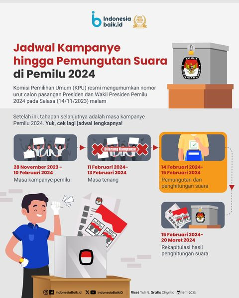 KPU telah menetapkan masa kampanye Pemilu serta Pilpres mulai 28 November 2023 besok hingga 10 Februari 2024, kemudian jadwal pemungutan suara pada ta...