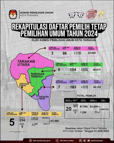 Pengumuman Daftar Pemilih Tetap (DPT) Pemilihan Umum Tahun 2024 Tingkat Kota TarakanRapat Pleno Terbuka Rekapitulasi dan Penetapan Daftar Pemilih Teta...