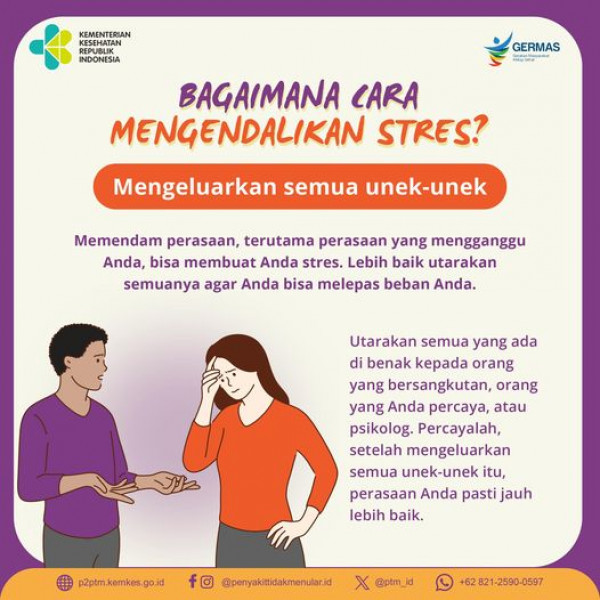 Bagaimana Cara Mengendalikan Stres?yang pertama cobalah untuk mengeluarkan semua unek-unek pada orang yang Anda percaya.#CERDIK #CegahPTM #DukungGERMA...