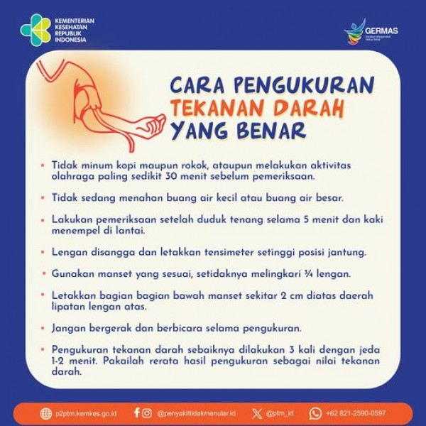 Bagaimana Cara Pengukuran Tekanan Darah yang Benar?#CERDIK #CegahPTM #DukungGERMAS #Hipertensi Sehat-PenyakitSumber FB : Penyakit Tidak Menular Indone...