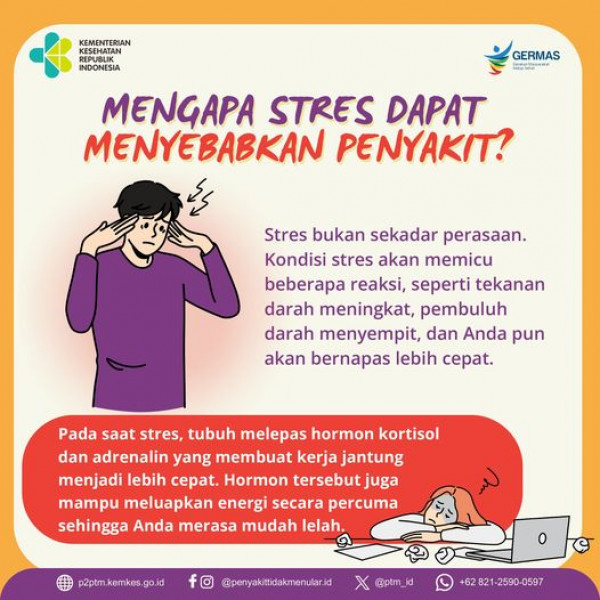 Mengapa Stres Dapat Menyebabkan Penyakit?#CERDIK #CegahPTM #DukungGERMAS #Stres #KelolaStres Sehat-PenyakitSumber FB : Penyakit Tidak Menular Indonesi...