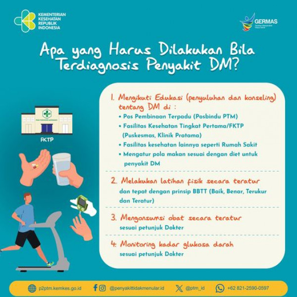 Apa yang harus dilakukan bila terdiagnosis penyakit DM?#CERDIK #CegahPTM #DukungGERMAS #DiabetesMelitus #Diabetes Sehat-PenyakitSumber FB : Penyakit T...