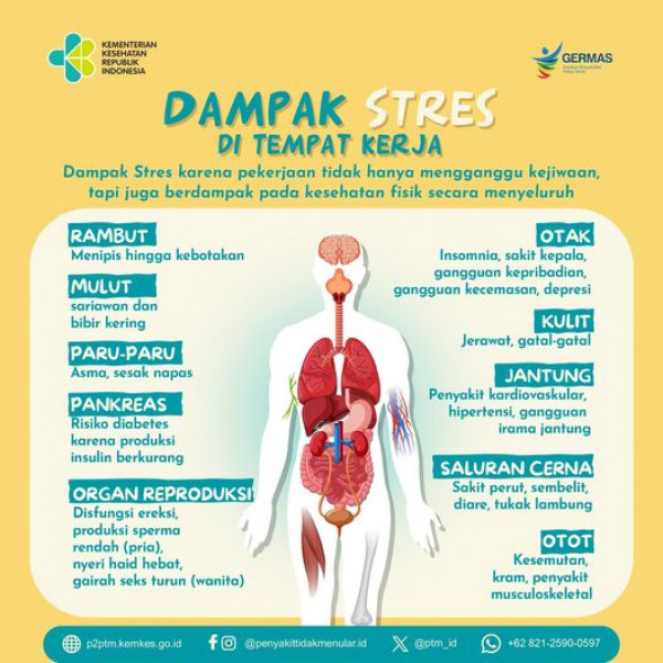 Sobat Sehat, inilah dampak stres di tempat kerja.#CERDIK #CegahPTM #DukungGERMAS #KelolaStres #Stres Sehat-PenyakitSumber FB : Penyakit Tidak Menular...
