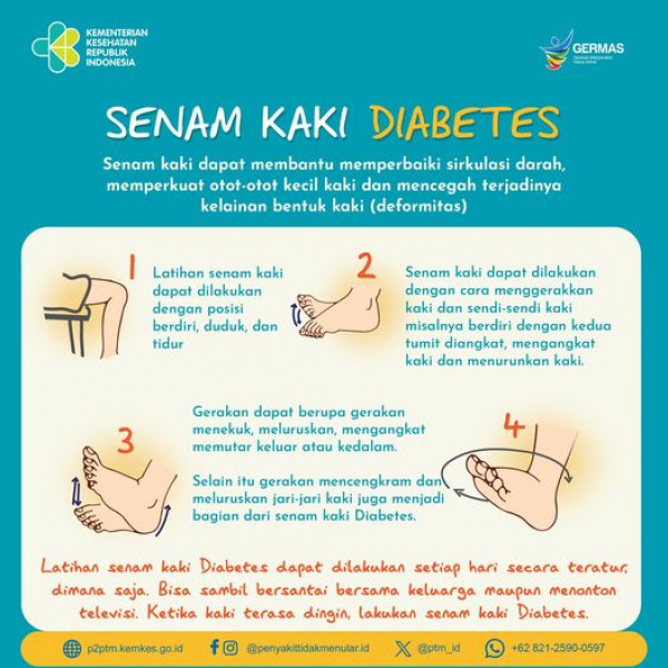 Senam Kaki Diabetes dapat membantu memperbaiki sirkulasi darah, memperkuat otot-otot kecil kaki dan mencegah terjadinya kelainan bentuk kaki.#CERDIK #...