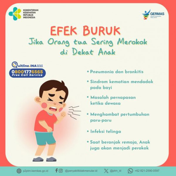 Apa saja efek buruk jika orang tua sering merokok di dekat Anak?#CERDIK #CegahPTM #DukungGERMAS #EnyahkanAsapRokok Sehat-PenyakitSumber Facebook...