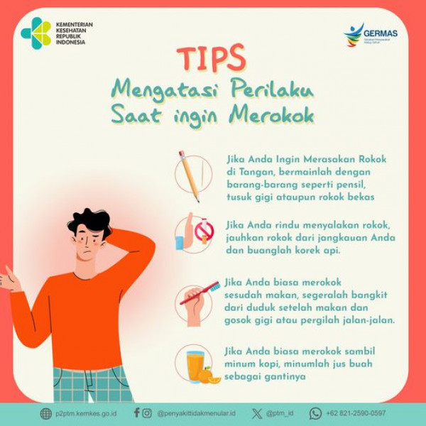 Tips Mengatasi Perilaku Saat Ingin Merokok#CERDIK #CegahPTM #DukungGERMAS #EnyahkanAsapRokok Sehat-PenyakitSumber Facebook : Penyakit Tidak Menul...
