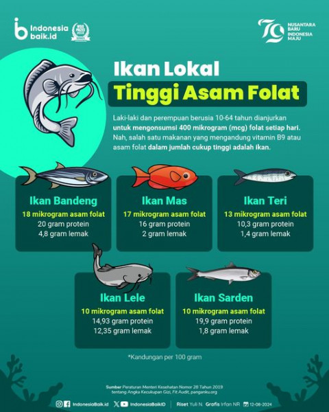 Pilihan Ikan Lokal Tinggi Asam FolatFolat atau vitamin B9 merupakan nutrisi yang berperan dalam pembentukan sel darah merah serta pertumbuhan dan fung...