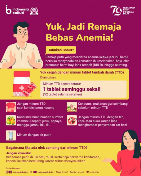 Yuk, Jadi Remaja Bebas Anemia!Kesehatan yang optimal bagi wanita perlu disiapkan jauh sebelum kehamilan. Bahkan, dari sejak remaja harus disiapkan unt...