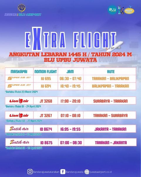 Penambahan Slot Penerbangan Extra Flight di Bandara Juwata TarakanHalooo sobat mudik..Untuk memenuhi kebutuhan calon pemudik saat Le...