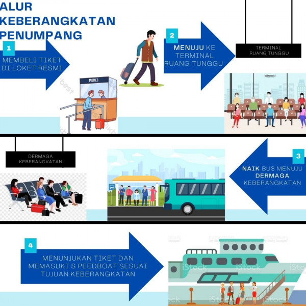 Berikut alur keberangkatan penumpang speedboat:1. Penumpang membeli tiket pada loket resmi yang telah disediakan2. Setelah membeli tiket sesuai dengan...