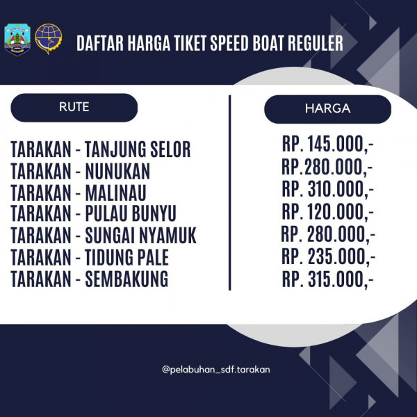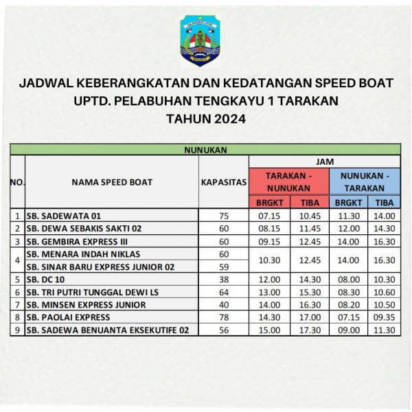 Jadwal Keberangkatan dan Kedatangan Speedboat UPTD Pelabuhan Tengkayu I Tarakan Tahun 2024Tarakan - Tanjung SelorSumber Instagram : pelabuhan_sdf.tara...
