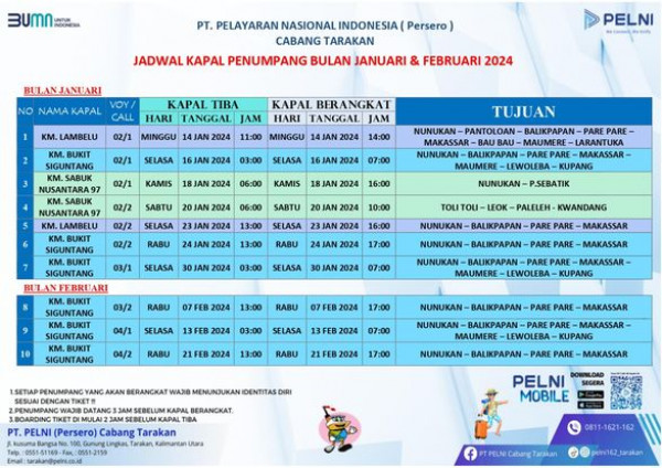 Jadwal Kapal Penumpang di Pelabuhan Malundung Bulan Januari 2024UPDATE : JADWAL KAPAL PENUMPANG YANG MENYINGGAHI PELABUHAN MALUNDUNG TARAKAN BULAN JAN...
