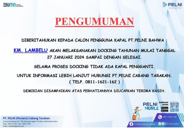 KM Lambelu Akan Melaksanakan Docking Tahunan 27 Ja...