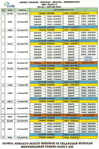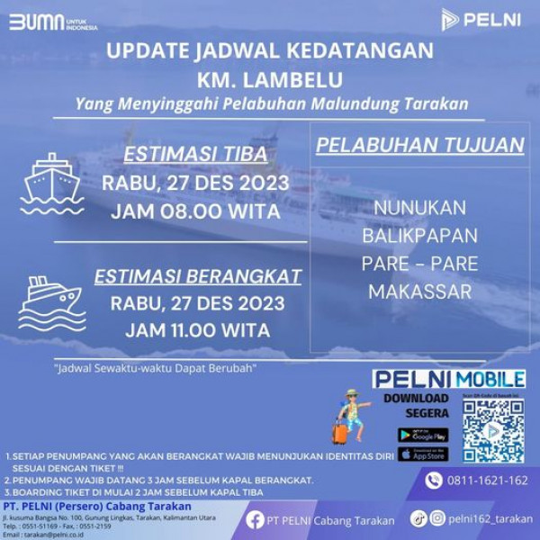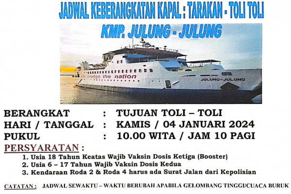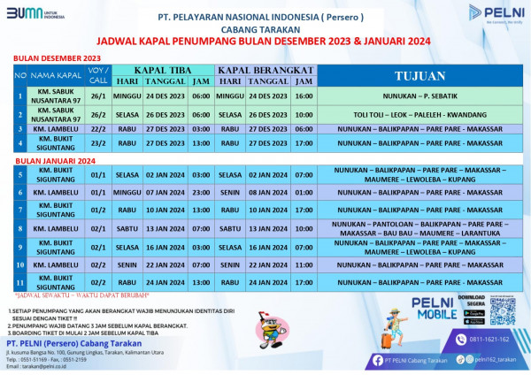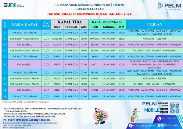 UPDATE : JADWAL KAPAL PENUMPANG YANG MENYINGGAHI PELABUHAN MALUNDUNG TARAKAN BULAN JANUARI 2024.NB : BELILAH TIKET JAUH HARI SEBELUM KEBERANGKATAN SEL...