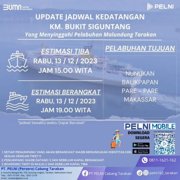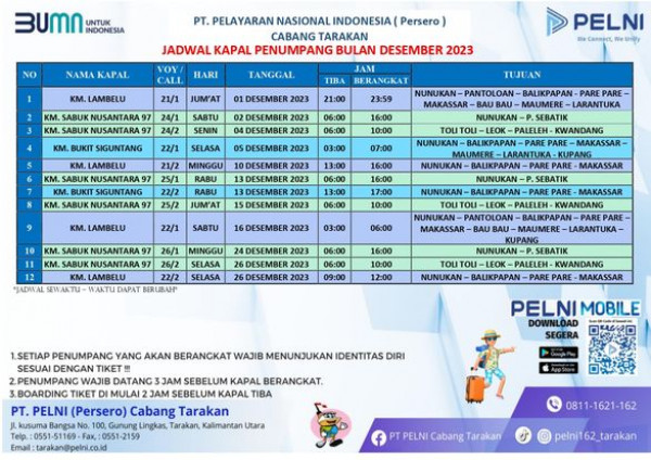 UPDATE : JADWAL KAPAL PENUMPANG YANG MENYINGGAHI PELABUHAN MALUNDUNG TARAKAN BULAN DESEMBER 2023.NB : BELILAH TIKET JAUH HARI SEBELUM KEBERANGKATAN SE...
