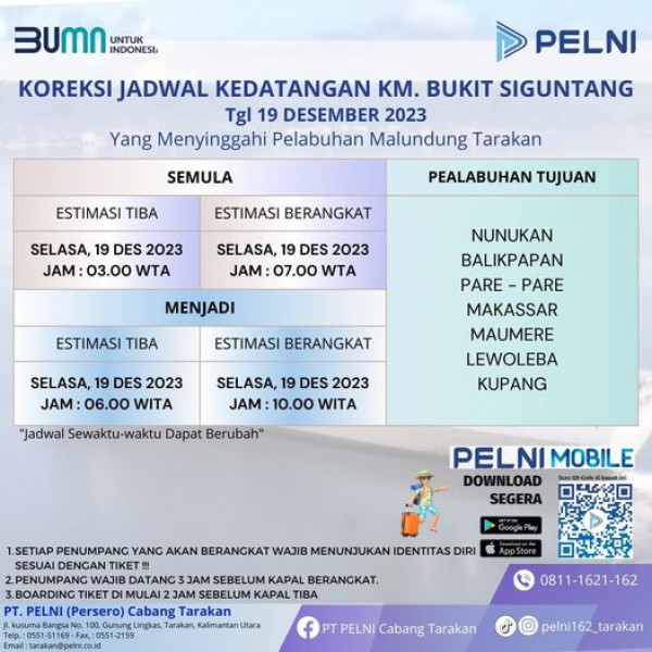 Koreksi Jadwal Kedatangan KM Bukit Siguntang 19 No...