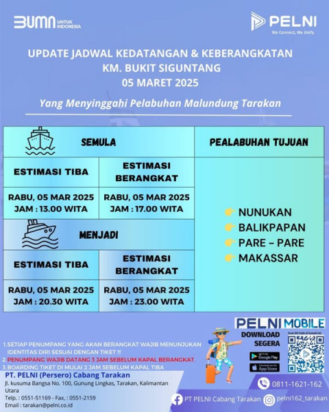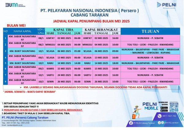 UPDATE : JADWAL KAPAL PENUMPANG YANG MENYINGGAHI PELABUHAN MALUNDUNG TARAKAN BULAN MEI 2025.NB : BELILAH TIKET JAUH HARI SEBELUM KEBERANGKATAN SELAMA...