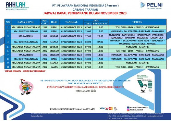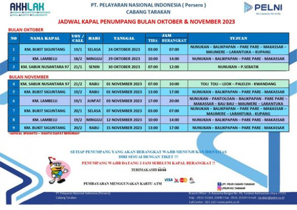 UPDATE : JADWAL KAPAL PENUMPANG YANG MENYINGGAHI PELABUHAN MALUNDUNG TARAKAN BULAN OKTOBER-NOVEMBER 2023.NB : BELILAH TIKET JAUH HARI SEBELUM KEBERANG...