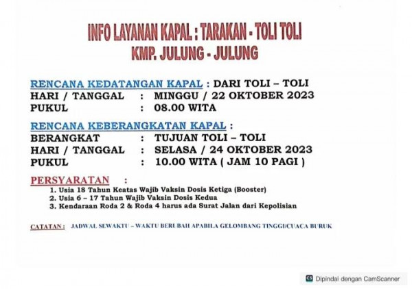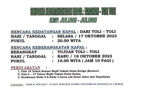 Jadwal KMP Julung-Julung - Tarakan-Toli-toli 2 Nov...