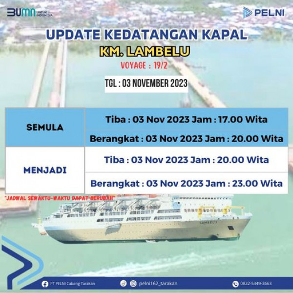 Update Kedatangan Kapal KM Lambelu 3 November 2023
