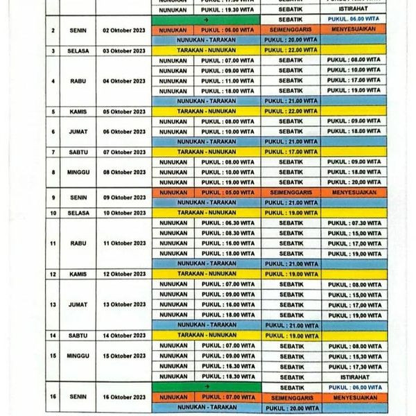 Jadwal Kapal Lintas TARAKAN - NUNUKAN Bulan Oktober 2023