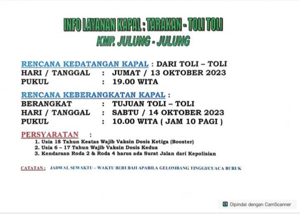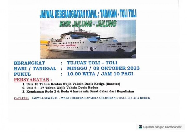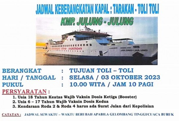 Jadwal Keberangkatan KMP Julung-Julung 3 Oktober 2023 Tujuan : Tarakan Toli-Toli