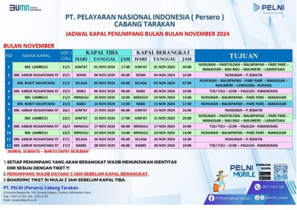 Jadwal Kapal PELNI Yang Menyinggahi Pelabuhan Malundung Tarakan Bulan November 2024UPDATE : JADWAL KAPAL PENUMPANG YANG MENYINGGAHI PELABUHAN MALUNDUN...