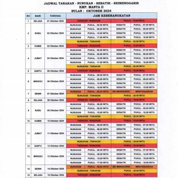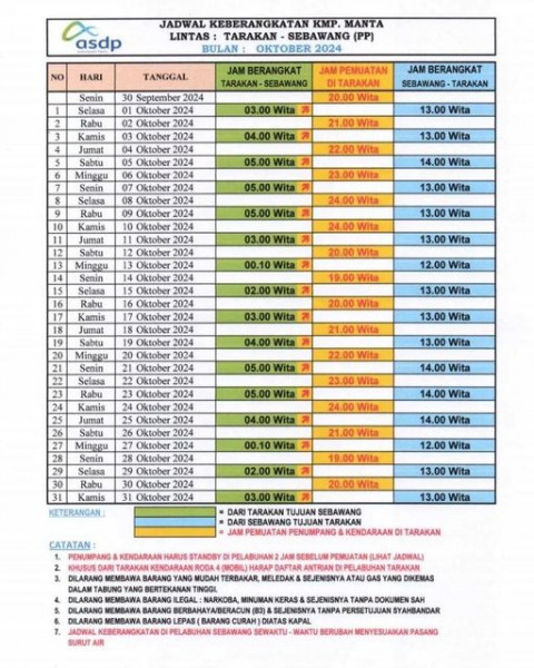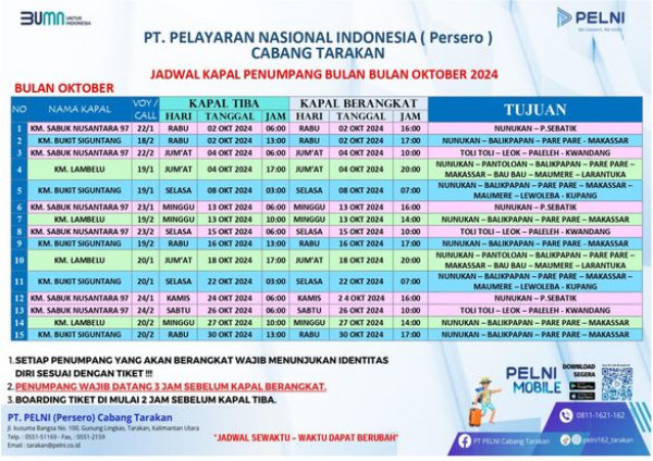 UPDATE : JADWAL KAPAL PENUMPANG YANG MENYINGGAHI PELABUHAN MALUNDUNG TARAKAN BULAN OKTOBER 2024.NB : BELILAH TIKET JAUH HARI SEBELUM KEBERANGKATAN SEL...